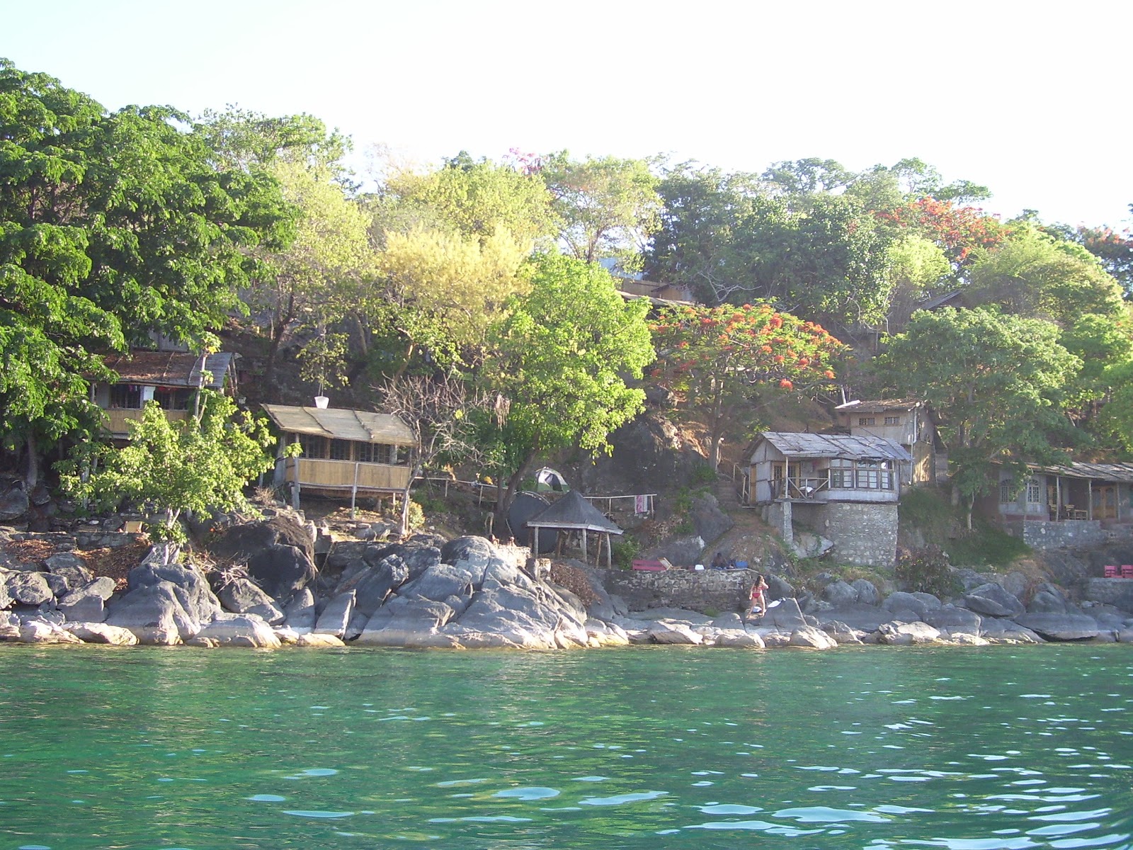 We stayed the night at a hostel in Lilongwe and asked the cool kids working at the hostel for a dinner recommendation. We then took another taxi to a fabulous Thai food dinner. It was great to take a shower and be off of buses for a while. The next morning, back to the bus station where Michelle worked her magic again and negotiated the correct rate for our next bus ride to Nkhata Bay, Malawi. We made the mistake of sitting in the front of the bus. Big mistake because they use the front seats on the other side of the bus for luggage and as we traveled, they kept loading more people on which meant more luggage. Then people were standing in the isles and my shoulder became a body rest. Oh…it gets better….then there were engine troubles! And this is like an old school bus where the engine is inside the bus under a cover at the front of the bus. So…as we sat there in front, me now holding a little girl of about 2 or 3 on my lap (the poor thing kept falling asleep standing up and leaning into me so I asked her dad if it was okay for me to just hold her instead) the cover was lifted and gusts of hot air blew our way as several men stood around and tried to figure out how to fix the engine. Fortunately within about 30 minutes, one of the guys figured out that if he tied a rope to some part of the engine he could pull the rope once the driver got it into first gear and get it going. This made for an even greater adventure because they would get going quite fast and the road was narrow so the driver, keeping his cool, would honk and honk at people on their bicycles and other drivers coming from the opposite direction. Everyone seemed to understand that our bus had gone rouge and they all got out of the way in the nick of time….thankfully. We arrived in Nkhata Bay after dark and luckily a local figured out we were the ones trying to figure out how to get the free ride from town we had been promised by our hotel. He got us there safe and sound and we again took much needed showers and ate a fabulous meal. The next day we stayed put as our hotel (hostel…not sure what to call it because it was much too nice to call a hostel but it had that laid back feel to it) was right on Lake Malawi where we swam and rested in the sun, snorkeled and checked out the fresh water fish, and took a sunset boat ride and saw Condoleza Rice and Tony Blair…. two eagles that the driver had trained to come and fetch fish he threw in the water close to the boat. Amazing day…..